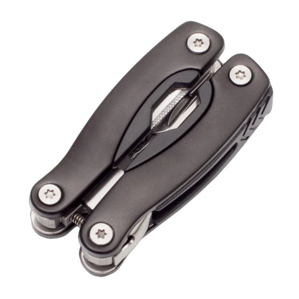 Narzędzie 9 funkcyjne w aluminiowej obudowie stanowiące wersję kieszonkową narzędzia Feat. Ostrza wykonane ze stali nierdzewnej. Pakowane w poliestrowe etui. Narzędzie zawiera: nóż, wkrętak PH krzyżowy, otwieracz do butelek, wkrętak płaski średni, nóż z ostrzem typu serrated, szczypce uniwersalne z nożycami do cięcia drutu, wkrętak płaski mały, otwieracz do konserw, pilnik pojedynczy jednorzędowy i podwójny jednorzędowy.