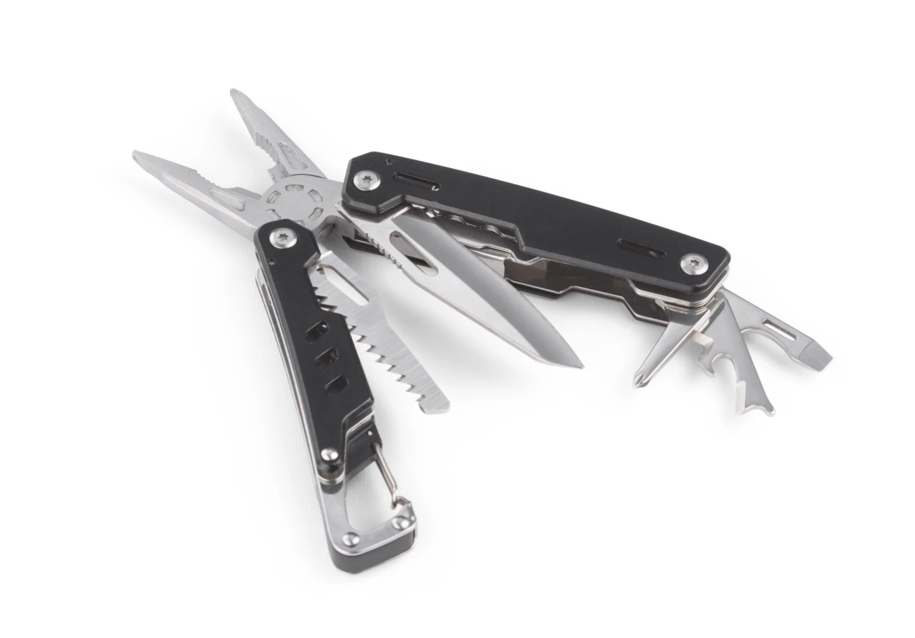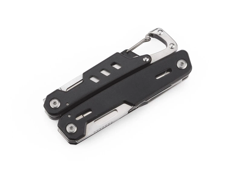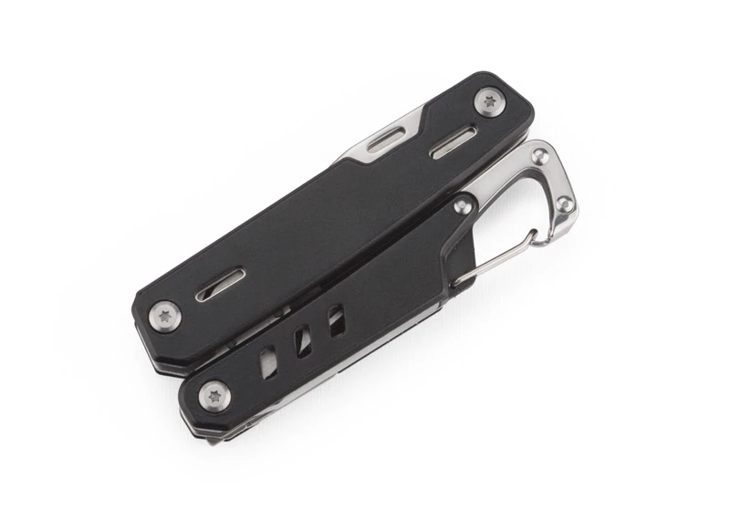 INGE zawsze będzie pod ręką dzięki wygodnemu karabińczykowi. To niezwykle praktyczne narzędzie z następującymi końcówkami roboczymi: kombinerki, przecinak, nóż o gładkim ostrzu, piła, nożyk do ściągania izolacji, śrubokręt płaski i krzyżowy oraz otwieracz do butelek i puszek. Końcówki z nożem i piłą po rozłożeniu unieruchamiane są blokadą, dzięki czemu narzędzie INGE jest dużo bardziej bezpieczne.