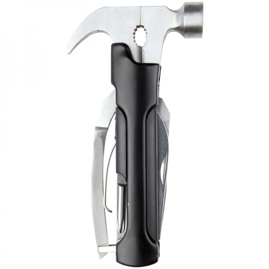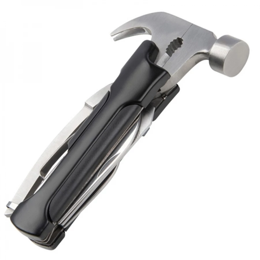 Młotek wykonany ze stali nierdzewnej, posiada 9 funkcji. Produkt zapakowany w etui z poliestru.