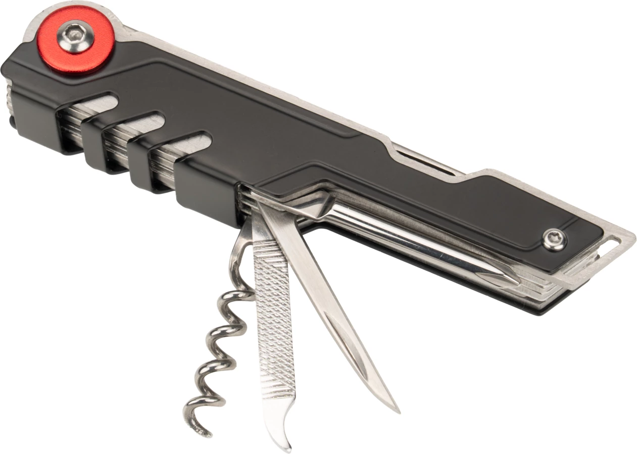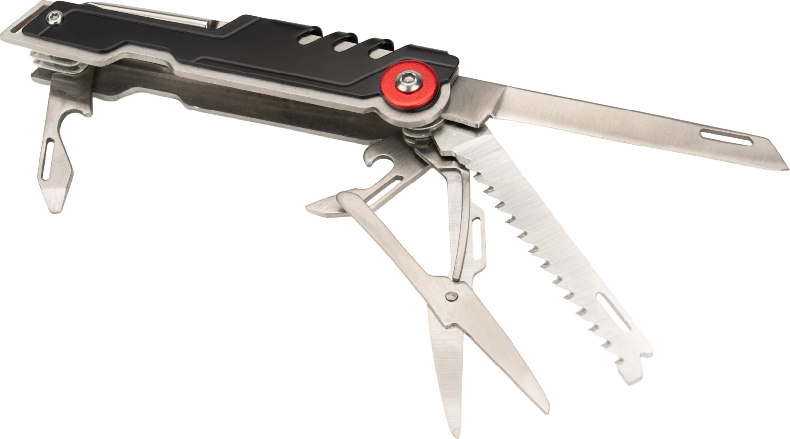 Narzędzie wielofunkcyjne marki Schwarzwolf z 12 przyborami. Wykonane ze stali S/S 2CR13.