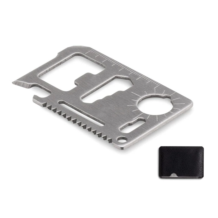 Kieszonkowe narzędzie wielofunkcyjne ze stali nierdzewnej, 11 funkcji, w etui z PU.