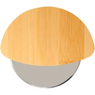 Przyrząd do krojenia pizzy z bambusowym uchwytem i ostrzem ze stali nierdzewnej.