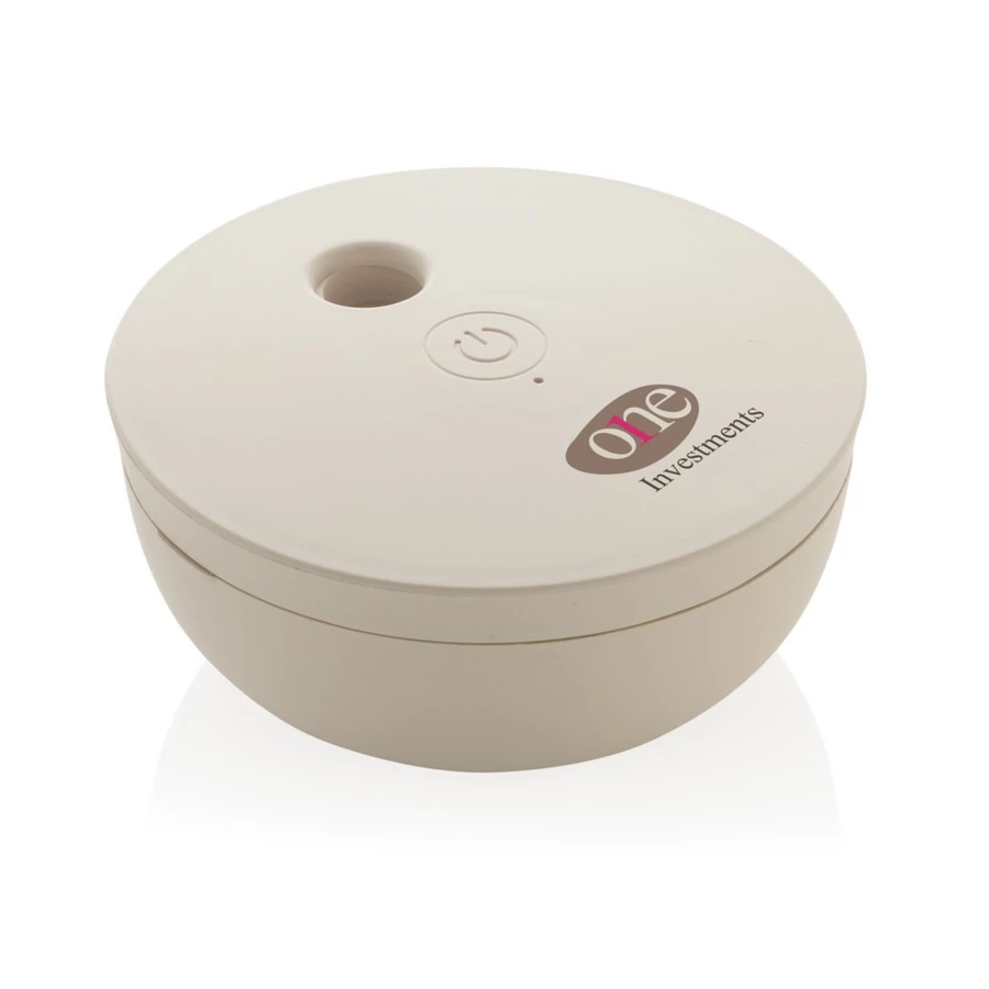 Nawilżacz powietrza, dzięki specjalnej konstrukcji nawilżacz unosi się na powierzchni wody, można umieścić go w szklance, wazonie czy też misce, do 6 godzin pracy na jednym ładowaniu, wykonany z materiałów z recyklingu, całkowita zawartość materiałów z recyklingu obliczona na podstawie wagi całkowitej przedmiotu: 51%