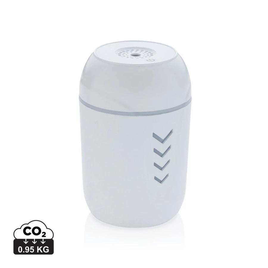 Nawilżacz powietrza ze sterylizującym światłem UV-C, wykonany z wytrzymałego ABS, urządzenie nawilża powietrze zimą, a latem delikatnie ochładza, cicha praca urządzenia umożliwia używanie również w nocy, wbudowane światło UV-C zabija do 99,9% bakterii i drobnoustrojów w wodzie przed rozpyleniem, w zestawie 3 patyczki bawełniane, jeden patyczek wystarcza na 8 miesięcy ciągłego używania, wbudowany zbiornik 200 ml starcza na 4 godziny używania, długość fali UV-C 270nm-280nm, dla bezpieczeństwa użytkownika światło UV uruchamia się tylko gdy urządzenie jest zamknięte, w komplecie kabel micro USB 120 cm z TPE bez dodatku PVC, ślad węglowy produktu: 0,95 kg CO2