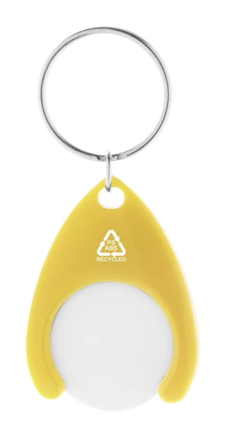 Brelok z tworzywa ABS pochodzącego z recyklingu, z żetonem do wózka na zakupy i metalowym kółkiem. Rozmiar monety: ø24×2 mm.