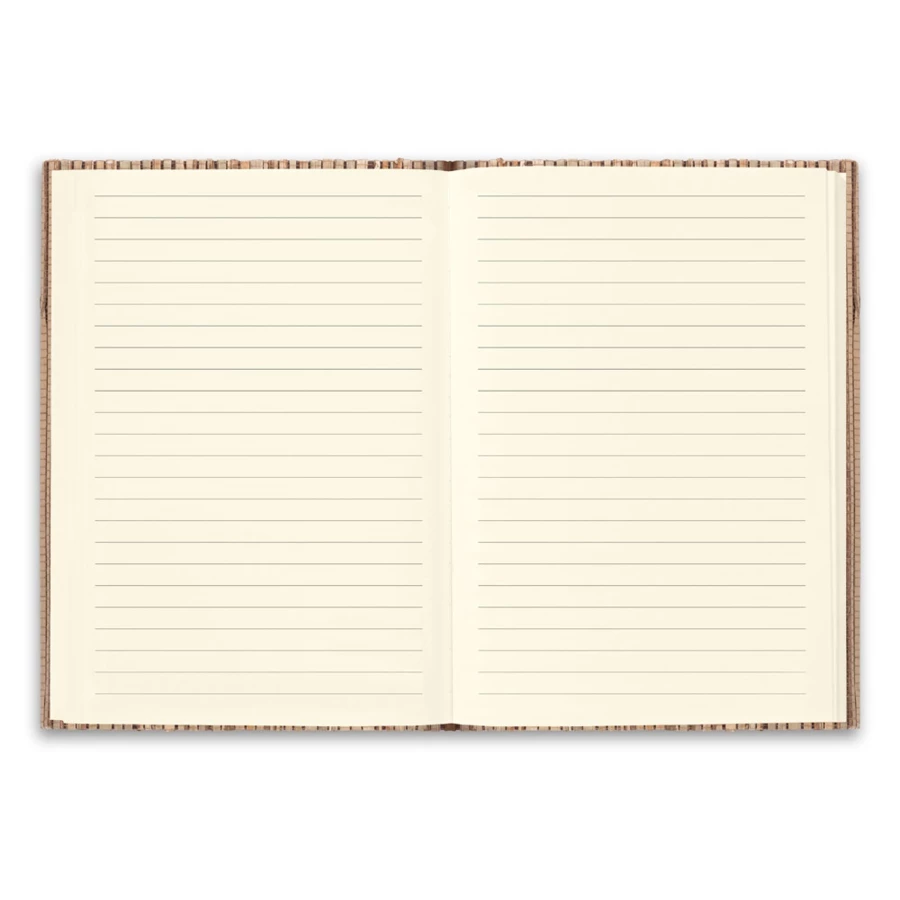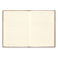 Notes A5 w twardej oprawie wykonanej z naturalnych włókien słomy. Zawiera metalową tabliczkę z możliwością personalizacji. Posiada 192 strony (70 g/m²) w linie w kolorze kości słoniowej. Dostarczany w pudełku prezentowym z papieru pakowego. 150 x 210 mm | Talerz: 30 x 15 mm