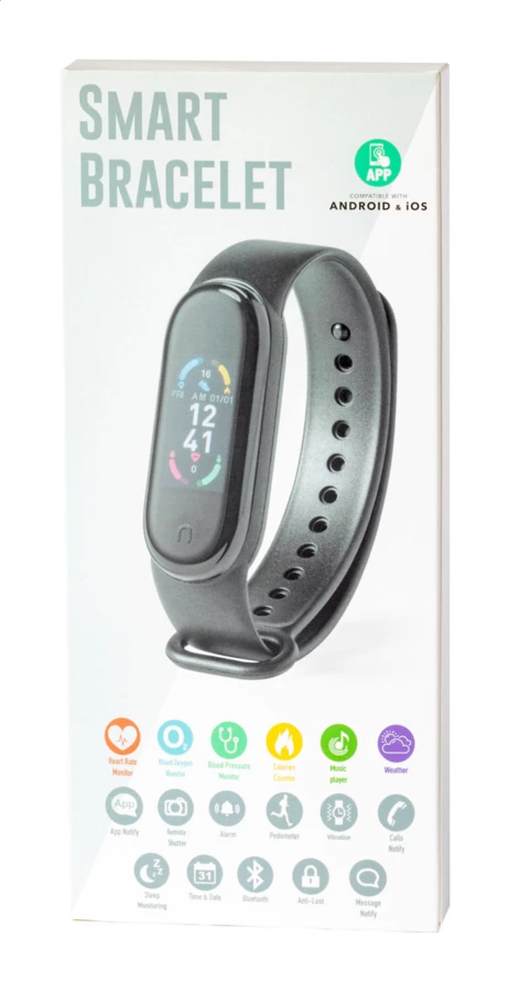 Wielojęzyczny, bezprzewodowy smartwatch z ekranem TFT 0,96" i paskiem z TPU. Z funkcjami pomiaru tętna, ciśnienia krwi i tlenu we krwi. W zestawie kabel USB do ładowania.