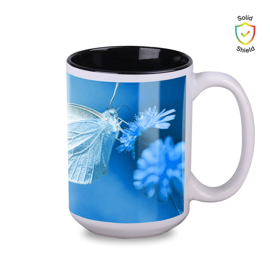 Kubek sublimacyjny o klasycznym kształcie i dużej pojemności. Występuje w kilku wariantach kolorowego wnętrza. Posiada ergonomiczne ucho oraz duże możliwości w zakresie brandingu.