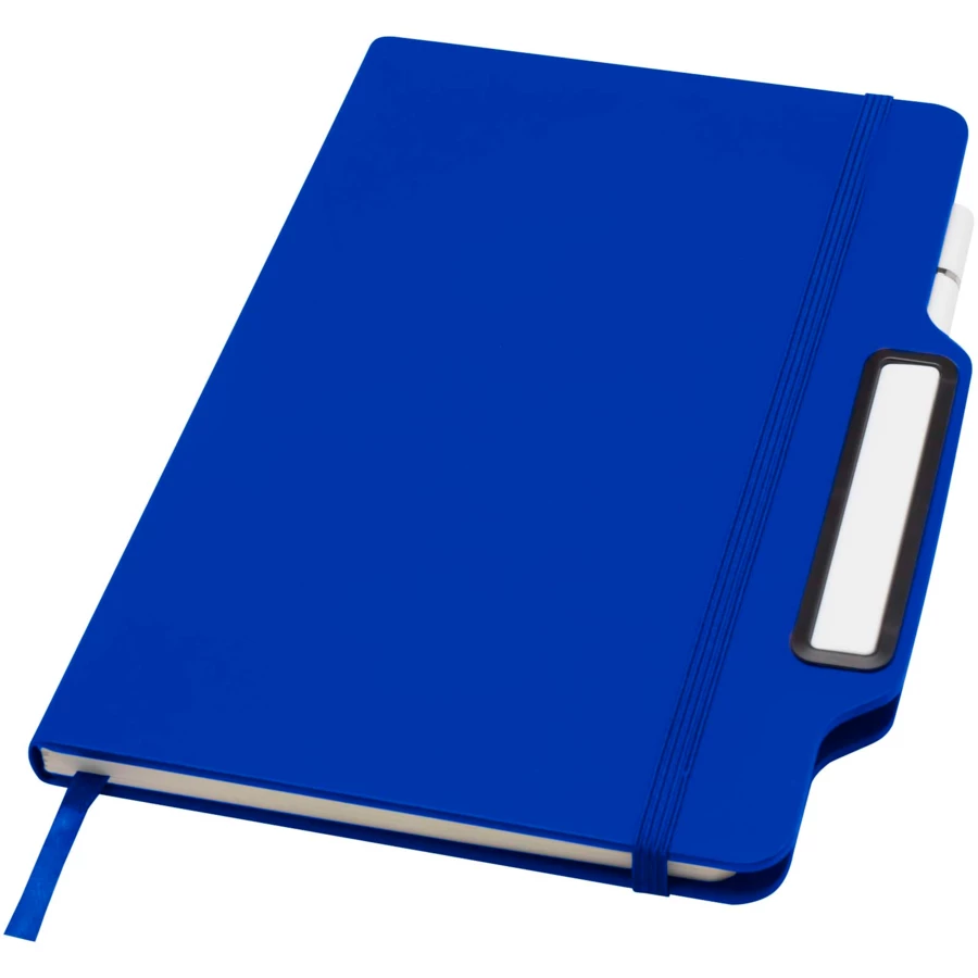 Notatnik w twardej okładce Nexus w formacie A5 z zestawem długopis/ołówek zawiera 80 kremowych kartek w linie o gramaturze 70 g/m² oraz ma zaokrąglone rogi, elastyczne zamknięcie i wstążkową zakładkę. Długopis ma dwie końcówki, z których jedna jest długopisem z czarnym tuszem, a druga ołówkiem. Długość linii pisania długopisem: 1000 metrów. Rozmiar stalówki: 1,00 (mm).