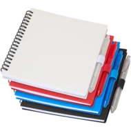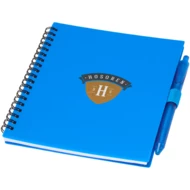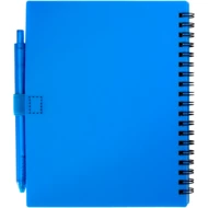 Notatnik z miękką okładką Niove wykonany z tworzyw sztucznych pochodzących z recyklingu i zawierający 70 kartek w kropki o gramaturze 70 g/m². Notatnik ma ostre rogi i wsuwkę na długopis. Rozmiar notatnika: 140 x 178 mm. Długopis również jest wykonany z plastiku pochodzącego z recyklingu. Kolor tuszu: Niebieski. Wydajność: 800 metrów. Grubość linii: 1,0 mm.
