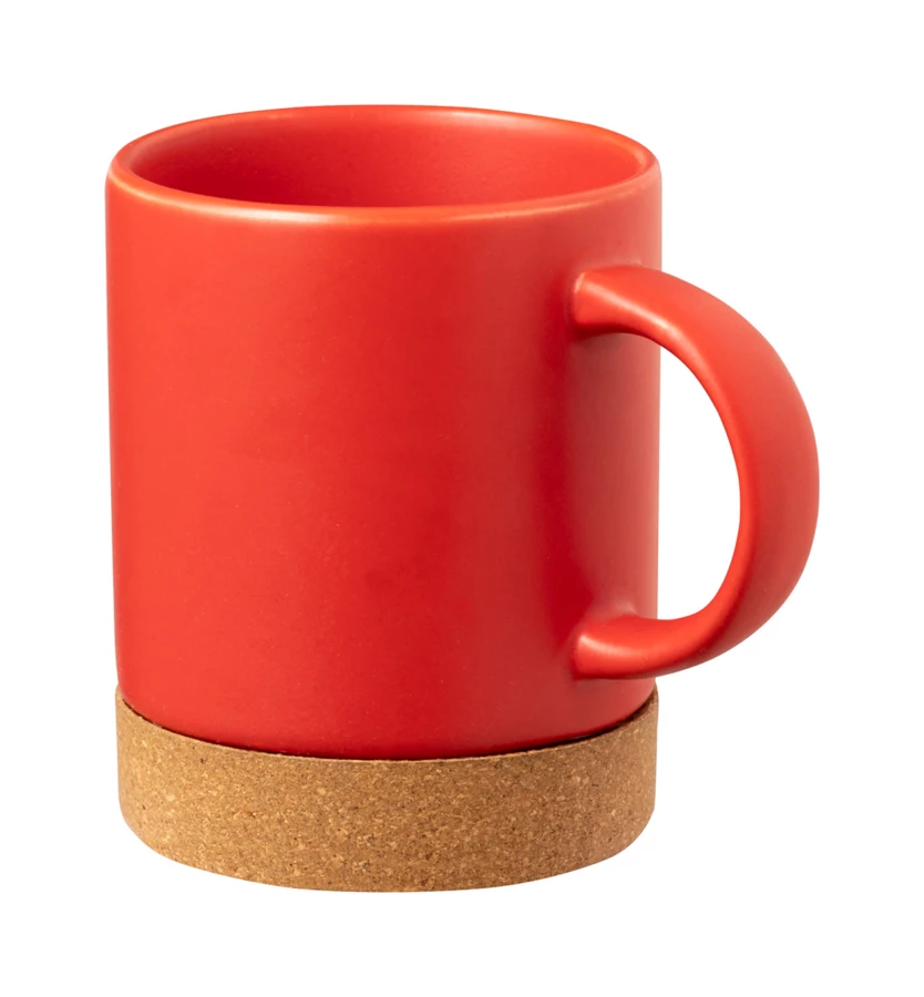 Kubek ceramiczny z podstawą z naturalnego korka, pojemność 350 ml. W pudełku z papieru kraft.