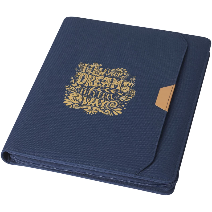 Nomumi teczka z notatnikiem do pisania częściowo wykonana z poużytkowego poliestru pochodzącego z recyklingu z certyfikatem RCS, co czyni ją bardziej zrównoważonym wyborem, ponieważ pomaga zmniejszyć zużycie pierwotnego surowca. Posiada zapięcie na zamek błyskawiczny, pętelkę na długopis, kieszeń harmonijkową i 20 białych kartek w linie z papieru z recyklingu o gramaturze 70 g/m2 pochodzącego ze zrównoważonych źródeł. Pióro i inne akcesoria widoczne na zdjęciach nie są dołączone do tego produktu.