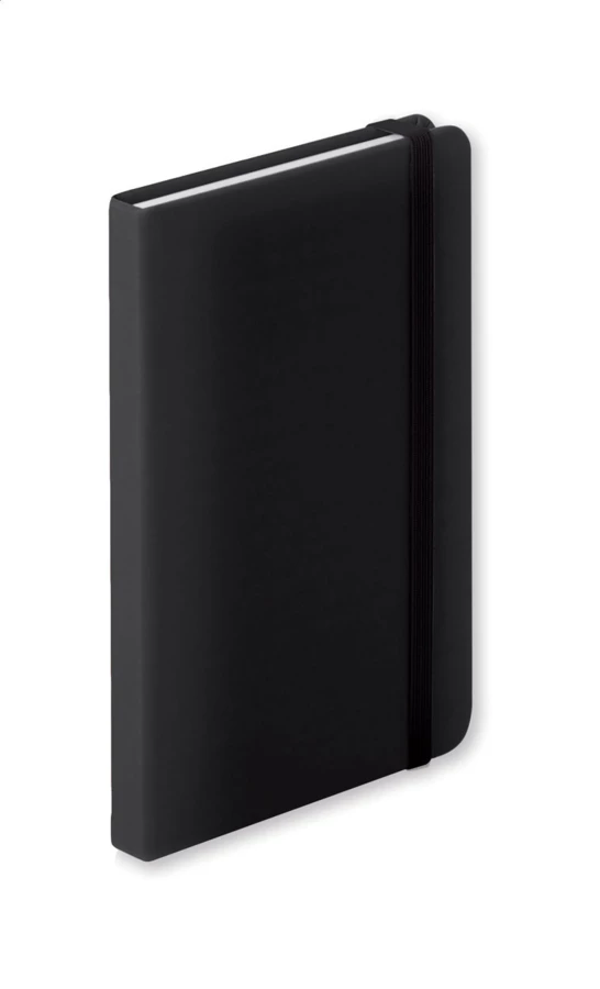 Notes z okładką ze skóry PU z 100 kartkami w linie. Zawiera zakładkę i gumkę. Rozmiar A6.