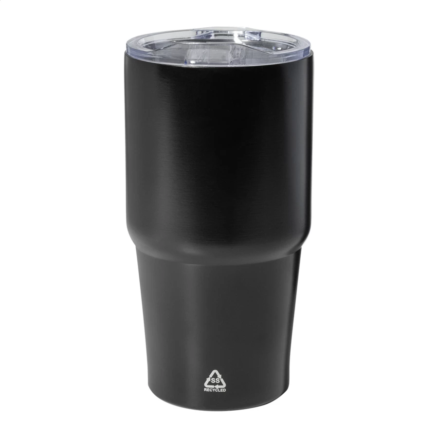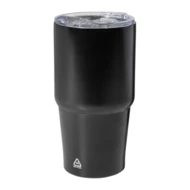 Dwuścienny, izolowany próżniowo kubek termiczny ze stali nierdzewnej z recyklingowaną pokrywką z tworzywa PS. 600 ml.