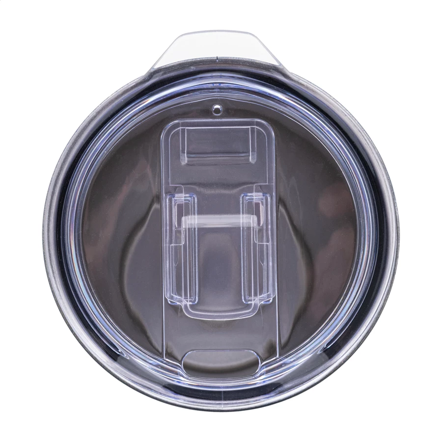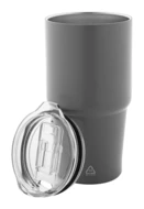 Dwuścienny, izolowany próżniowo kubek termiczny ze stali nierdzewnej z recyklingowaną pokrywką z tworzywa PS. 600 ml.