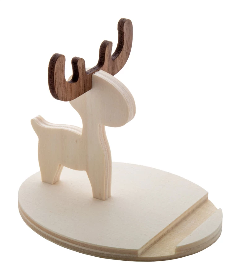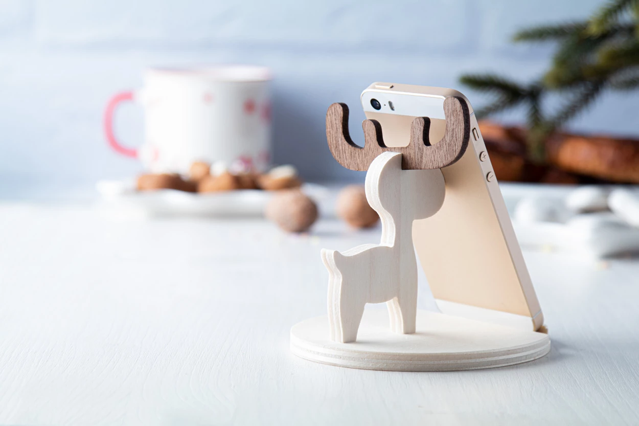 Uchwyt na telefon w kształcie renifera ze sklejki brzozowej. Dostarczany na płasko.