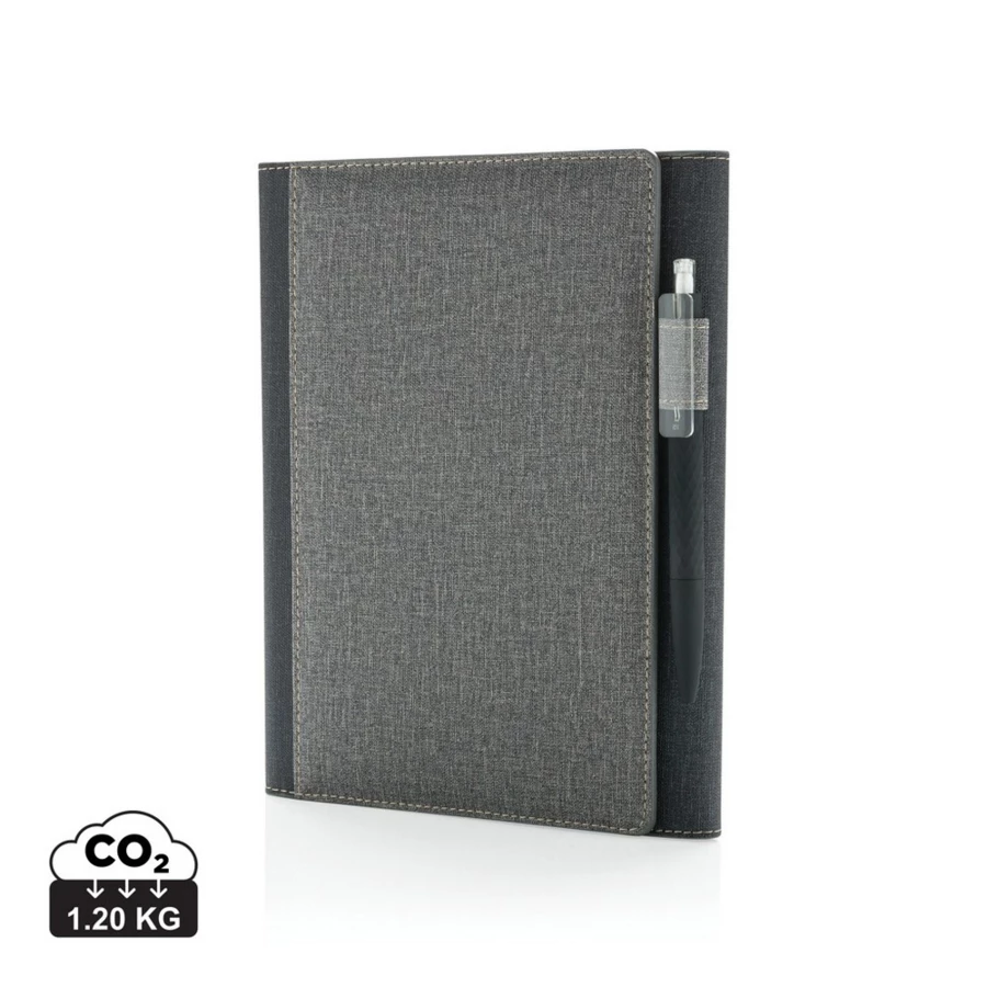Notatnik A5 (64 kremowe kartki 80 g/m2 w linie), okładka wielokrotnego użytku z magnetycznym zamknięciem i miejscem na przybory do pisania (nie dołączone), 3 miejscami na karty i 1 większą kieszenią, po zapisaniu wszystkich stron okładkę można użyć ponownie, wystarczy wymienić notatnik na nowy, ślad węglowy produktu: 1,2 kg CO2