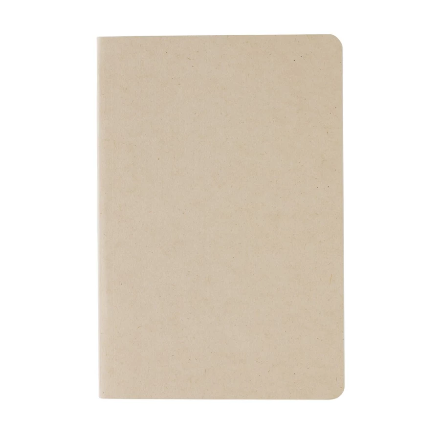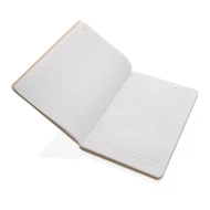 Notatnik A5 (48 kartek w linie), miękka okładka wykonana z trzciny cukrowej, strony wewnętrzne wykonane z mieszanki bambusa, kamienia i trzciny cukrowej, w obwolucie z papier kraftowego z certyfikatem FSC®