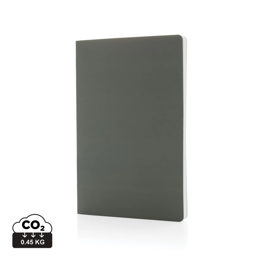 Notatnik A5 (60 białych kartek 58 g/m2 w linie), miękka okładka, notatnik wykonany z papieru kamiennego, który składa się w 80% z proszku mineralnego i 20% nietoksycznego HDPE (czysty plastik), 2% wpływów z każdego sprzedanego produktu z kolekcji Impact jest przekazywane na rzecz Water.org
