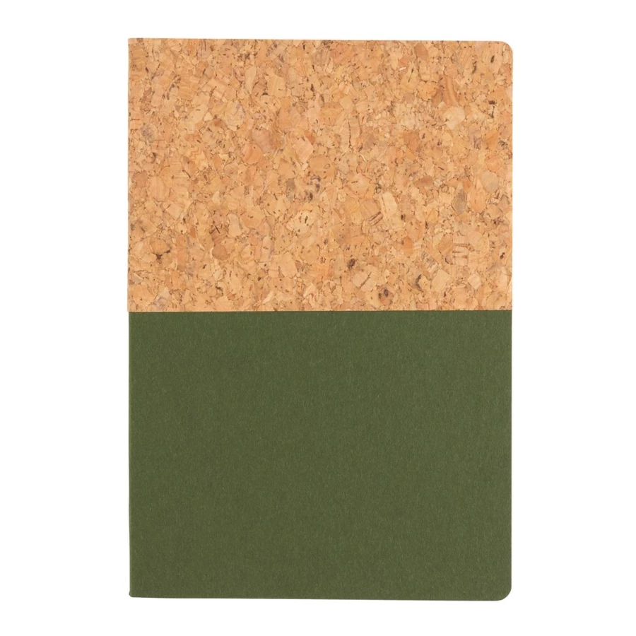 Notatnik A5 (80 kartek z papieru z recyklingu o gramaturze 80 g/m2 w linie), okładka wykonana z korka i papieru kraftowego, ślad węglowy produktu: 0,34 kg CO2
