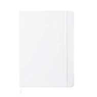Notatnik w formacie A5, posiada 100 pustych kartek, twarda okładka, tasiemka zakładkowa umożliwia wygodne zaznaczanie ostatniej strony lub ważniejszych notatek, dodatkowe zamknięcie w postaci dopasowanej kolorystycznie elastycznej opaski, produkt wykonany z PU