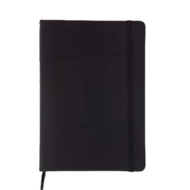 Notatnik w formacie A5, posiada 100 pustych kartek, twarda okładka, tasiemka zakładkowa umożliwia wygodne zaznaczanie ostatniej strony lub ważniejszych notatek, dodatkowe zamknięcie w postaci dopasowanej kolorystycznie elastycznej opaski, produkt wykonany z PU