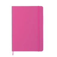 Notatnik w formacie A5, posiada 100 pustych kartek, twarda okładka, tasiemka zakładkowa umożliwia wygodne zaznaczanie ostatniej strony lub ważniejszych notatek, dodatkowe zamknięcie w postaci dopasowanej kolorystycznie elastycznej opaski, produkt wykonany z PU