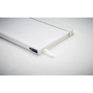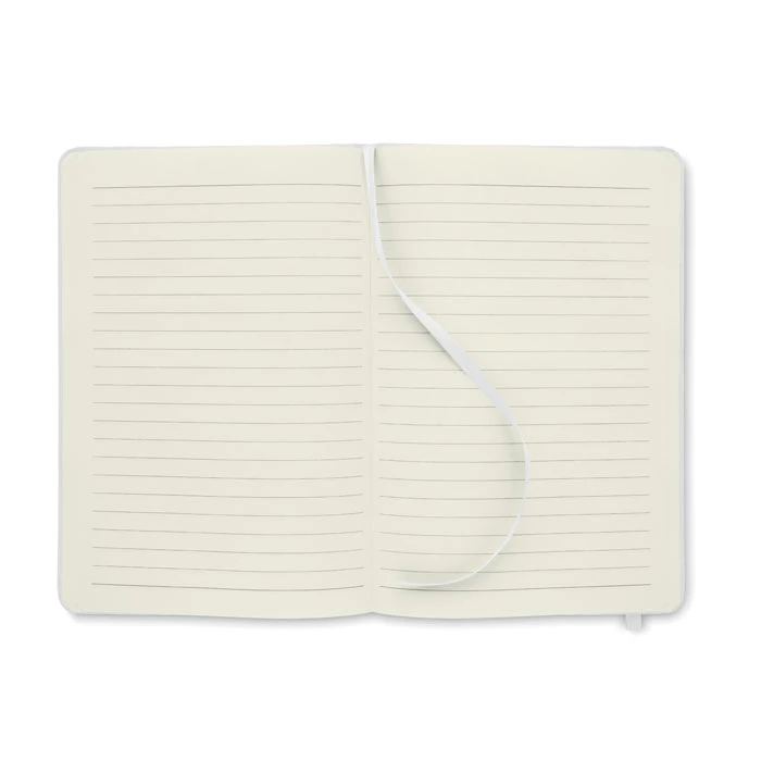 Notatnik A5 z twardą okładką 600D RPET. 160 stron (80 kartek) w linie z papieru ekologicznego. Dopasowany elastyczny pasek zamykający i zakładka z tasiemki. FSC®-certified | FSC MIX CREDIT, P7.1, FSC-C213206