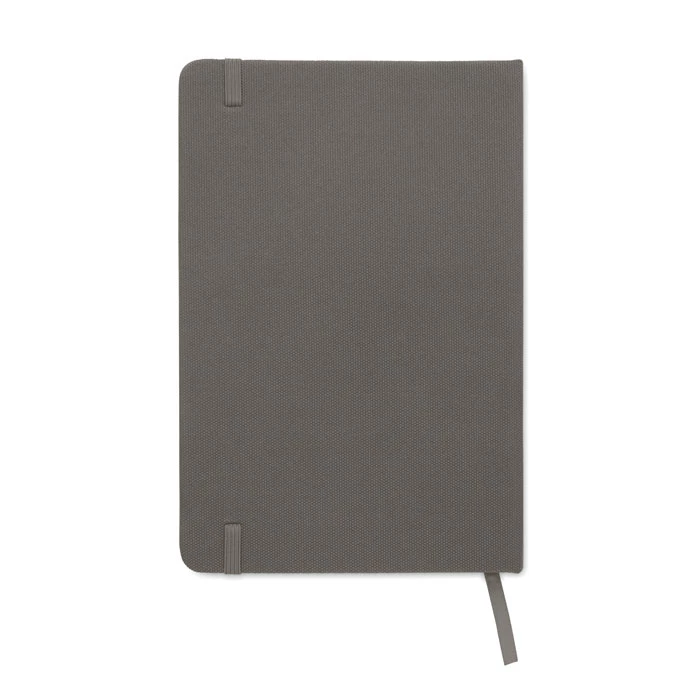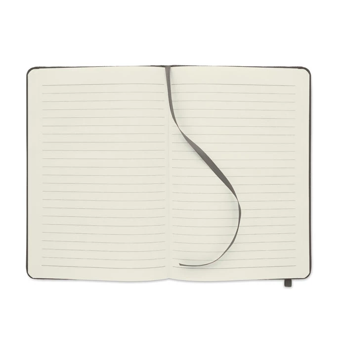 Notatnik A5 z twardą okładką 600D RPET. 160 stron (80 kartek) w linie z papieru ekologicznego. Dopasowany elastyczny pasek zamykający i zakładka z tasiemki. FSC®-certified | FSC MIX CREDIT, P7.1, FSC-C213206