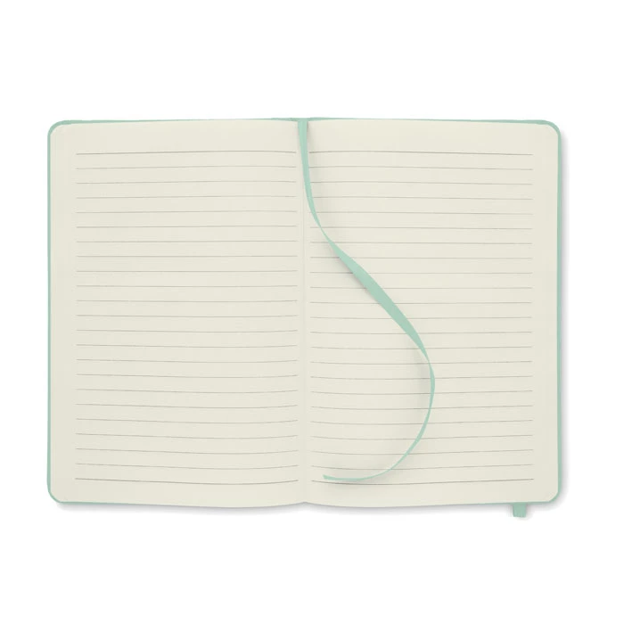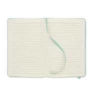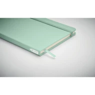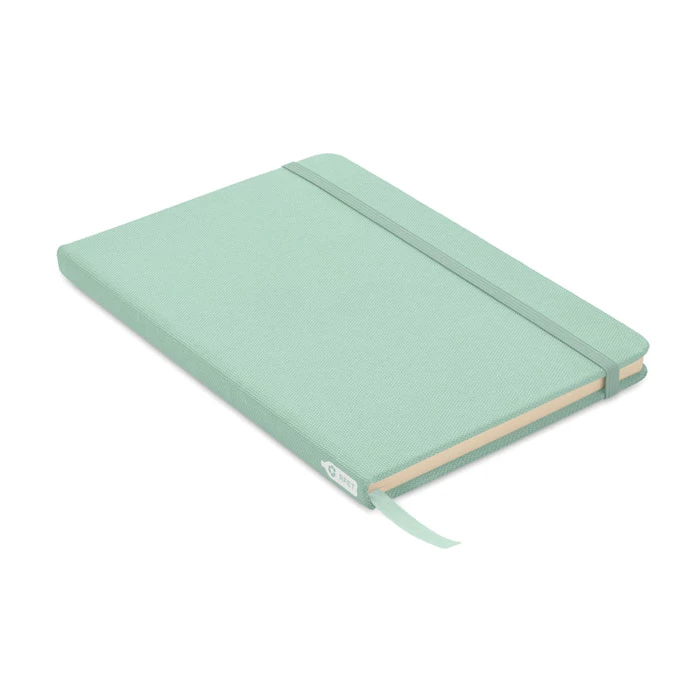 Notatnik A5 z twardą okładką 600D RPET. 160 stron (80 kartek) w linie z papieru ekologicznego. Dopasowany elastyczny pasek zamykający i zakładka z tasiemki. FSC®-certified | FSC MIX CREDIT, P7.1, FSC-C213206