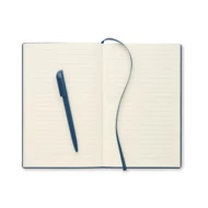 Notatnik A5 ze strukturalną okładką z PU i uchwytem na długopis z ABS wewnątrz grzbietu. Obwoluta. 160 stron w linie na papierze z recyklingu (80 arkuszy).