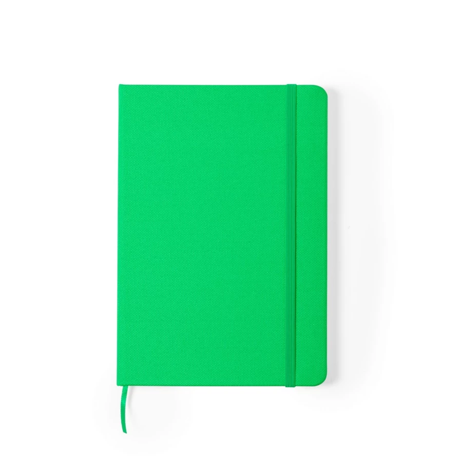 Notatnik A5 (80 kartek w linie), twarda okładka wykonana z RPET, tasiemka zakładkowa, elastyczna opaska do zamykania