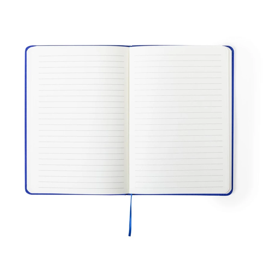 Notatnik A5 (80 kartek w linie), twarda okładka wykonana z RPET, tasiemka zakładkowa, elastyczna opaska do zamykania