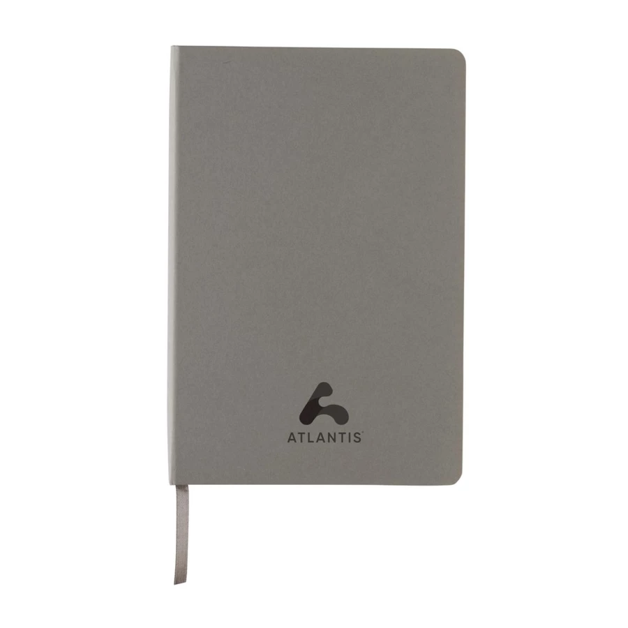 Notatnik A5, (80 kremowych kartek w linie), twarda okładka, okładka oraz strony wewnętrzne posiadają certyfikat FSC® (Forest Stewardship Council), tasiemka zakładkowa, ślad węglowy produktu: 0,52 kg CO2