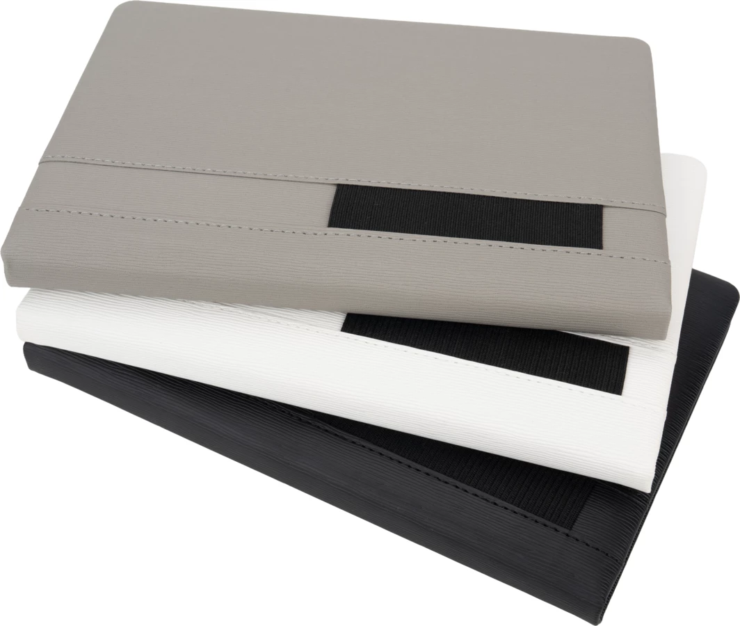 Notes A5 w okładce z PU, z zakładką, miejscem na długopis i 192 stronami w kratkę.