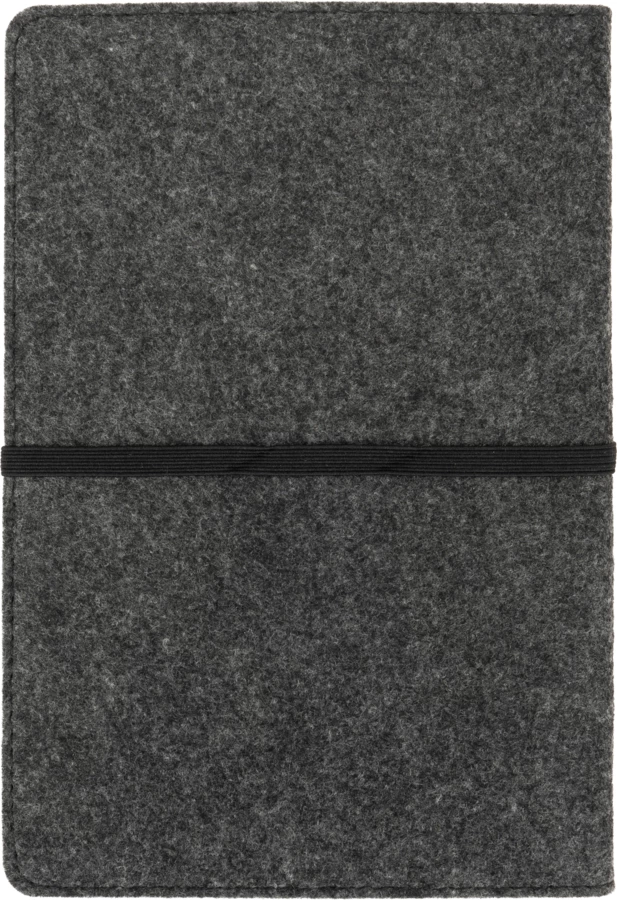 Notatnik A5 z filcową okładką, zakładką, zapięciem na gumkę i 192 stronami w kratkę.