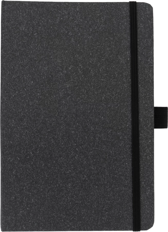 Notes o formacie A5 z zakładką i 160 stronami w kropki, zamykany na gumkę. Zarówno tekturowa okładka, jak i kartki są wykonane z papieru pochodzącego z recyklingu.