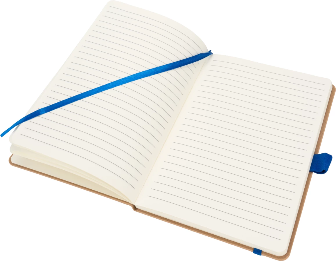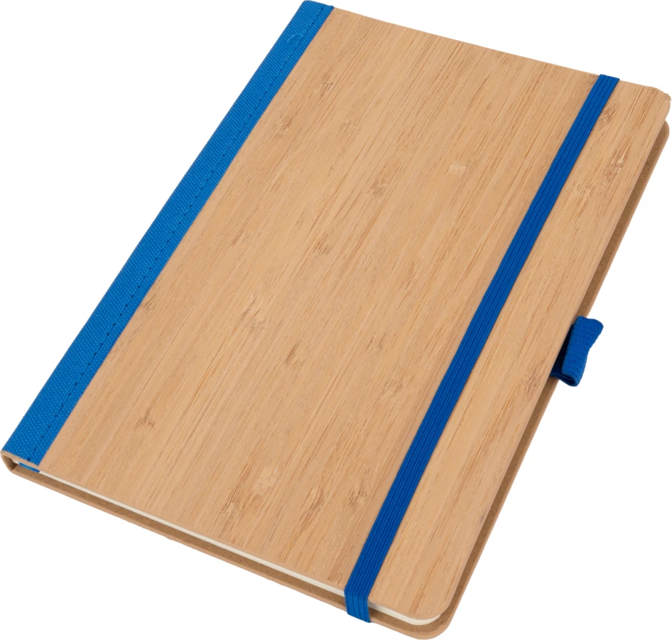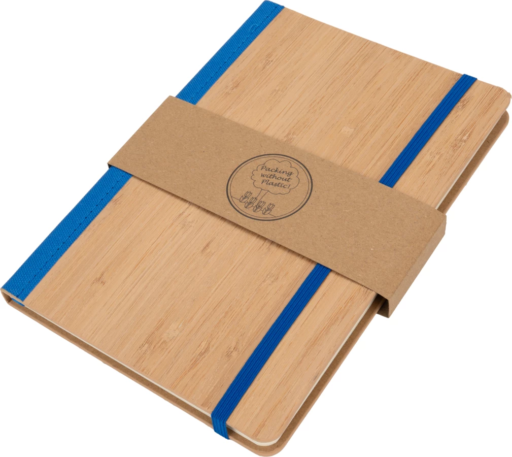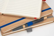 Notes o formacie A5, wykonany z bambusa i poliestru pochodzącego z recyklingu. Notes ma 192 stron w linie, zamknięcie na gumkę i pętelkę na długopis.