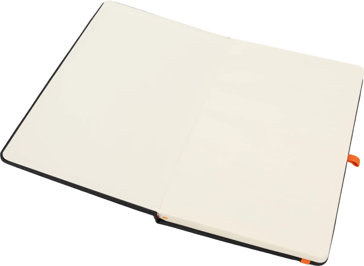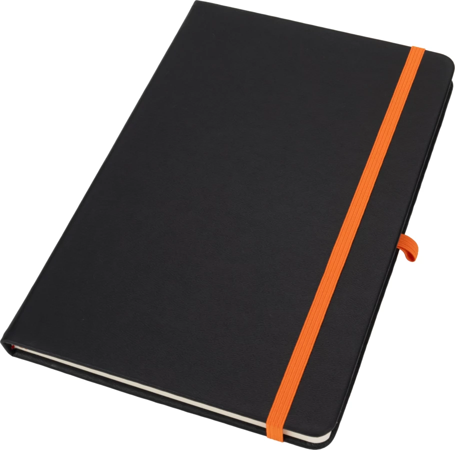 Notes o formacie A5, z okładką wykonaną z PU. Posiada 192 stron w linię, o gramaturze 70 g/m2. Notes ma również zakładkę i gumkę do zamykania. Grawer odsłania kolor okładki.