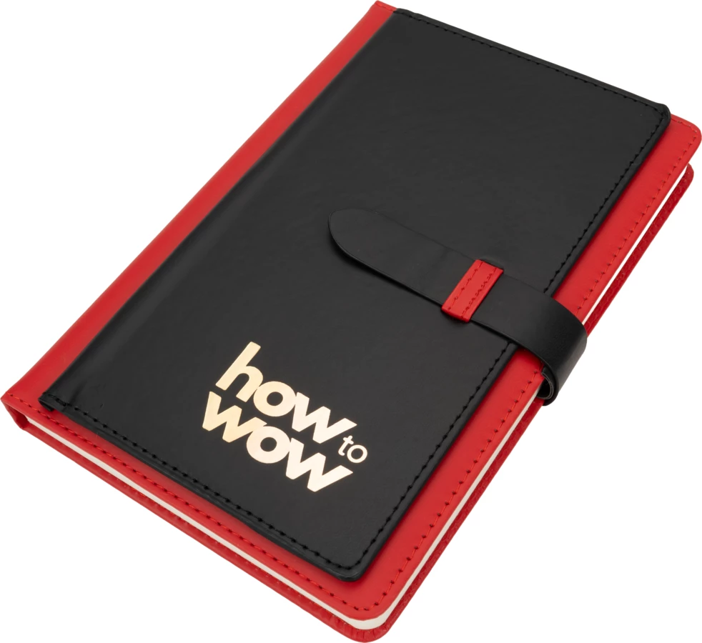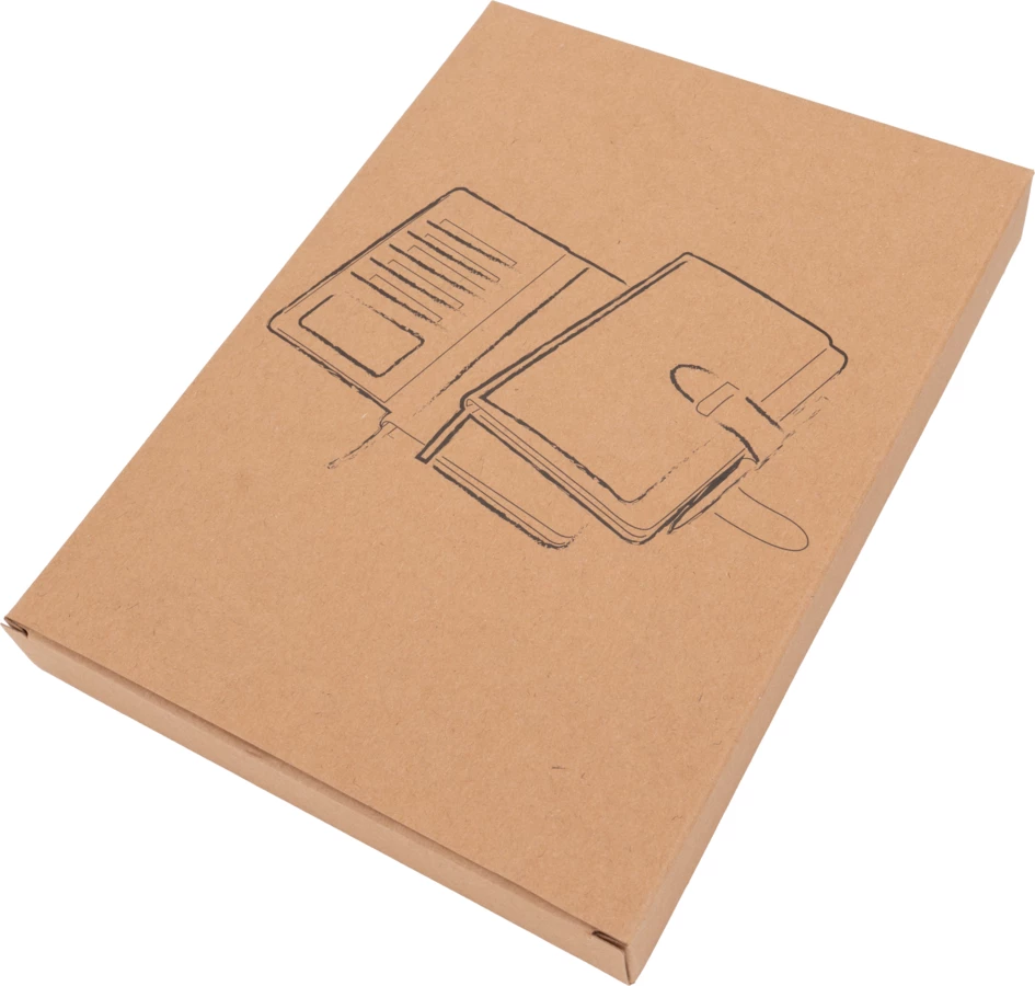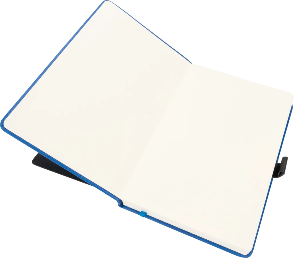 Notatnik A5 w okładce z PU, ze 128 kartkami w linie, miejscem na długopis i wizytownikiem na 5 wizytówek.
