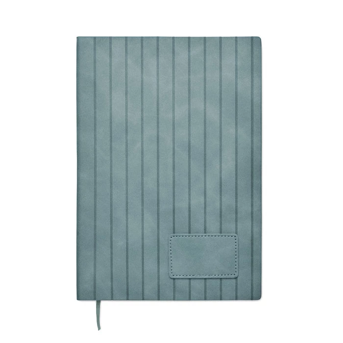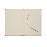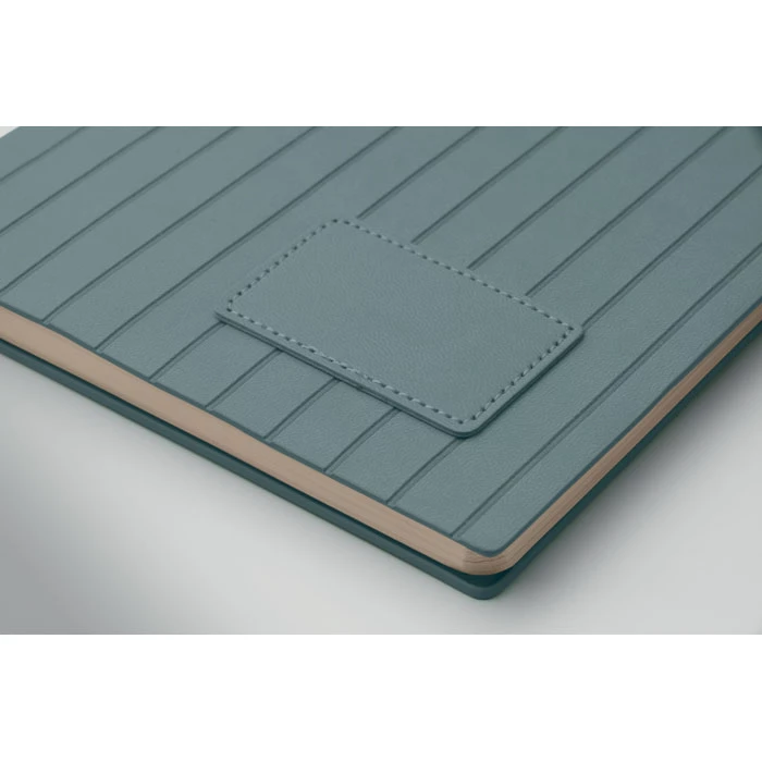 Notatnik A5 z miękką, prążkowaną okładką z PU wykonaną w 40% z materiałów pochodzących z recyklingu i w 60% z PU, z gładką naszywką z PU. 160 stron w linie, papier z recyklingu o gramaturze 70 g/m² (80 arkuszy). Dopasowany kolorystycznie znacznik strony z tasiemki.