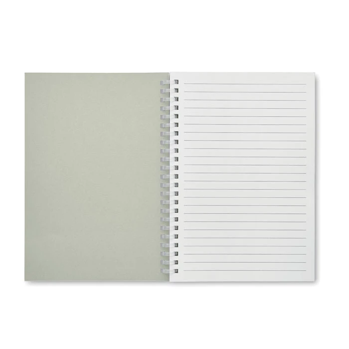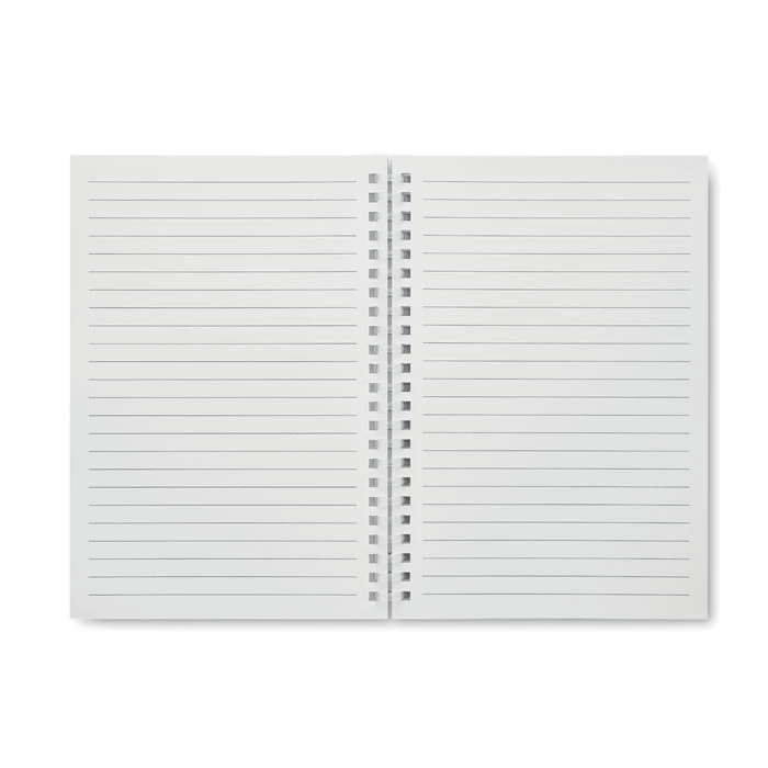 Notatnik A5 w miękkiej oprawie z kartonu pochodzącego z recyklingu na spirali. 160 stron w linie z papieru z recyklingu (80 arkuszy). FSC®-certified | FSC MIX CREDIT, P7.1, FSC-C213206