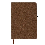 Notatnik w formacie A5, posiada 80 kartek w linie z papieru z recyklingu, twarda okładka, tasiemka zakładkowa umożliwia wygodne zaznaczanie ostatniej strony lub ważniejszych notatek, ikona łusek kawowych na produkcie, produkt wykonany z łusek kawowych i korka