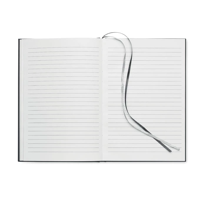 Notatnik A5 z okładką wykonaną w 60% z poliestru pochodzącego z recyklingu i w 40% z PU. 256 stron w linie na papierze z recyklingu o gramaturze 70 g/m² (128 arkuszy). Z 2 znacznikami stron z taśmy poliestrowej.