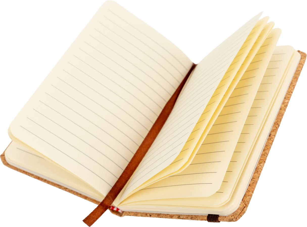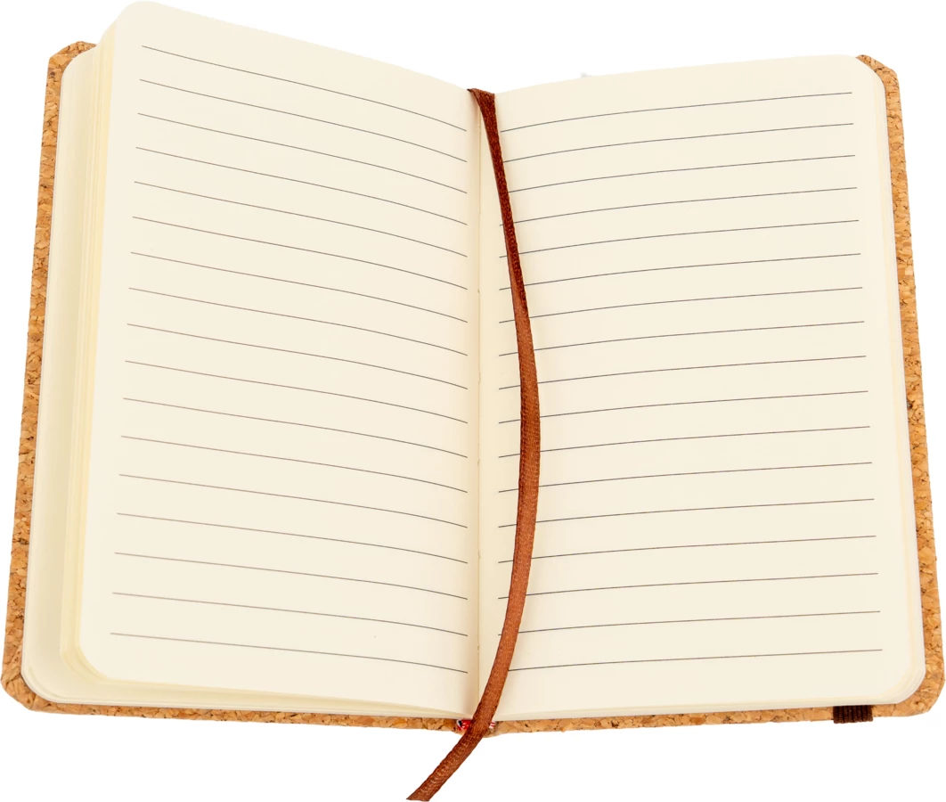 Notes format A6 w linie (160 stron) z okładką wykonaną z korka oraz zakładką i gumką do zamykania.
