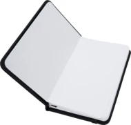 Notes (160 stron) w linie, w twardej oprawie z PU. Posiada tasiemkową zakładkę oraz gumkę umożliwiającą zamknięcie.
