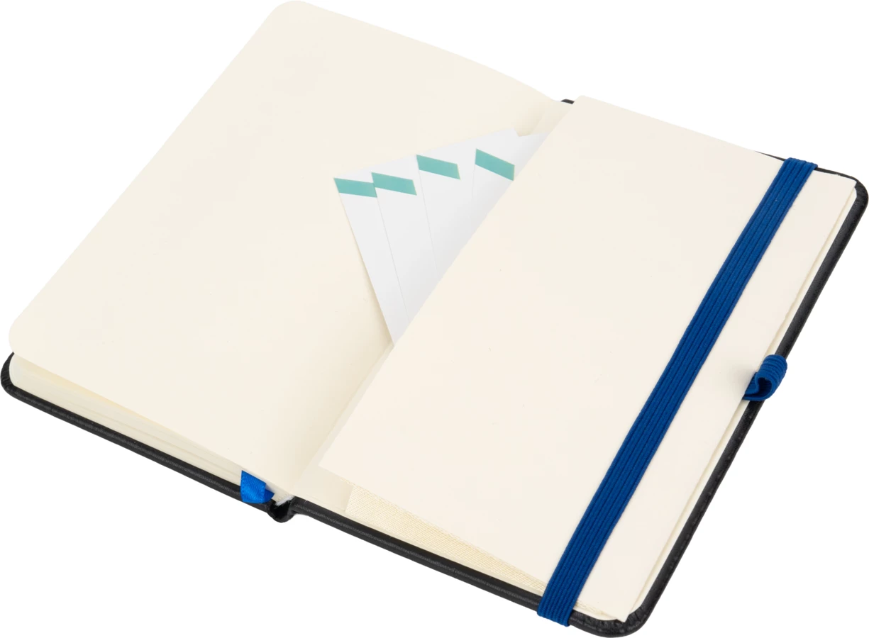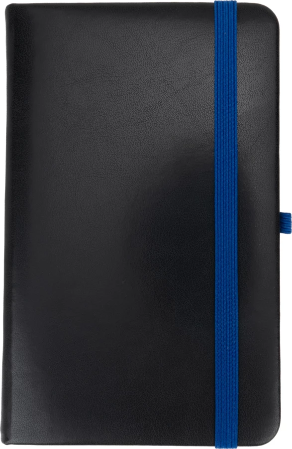Notatnik A6 w okładce ze skóry syntetycznej, ze 160 stronami w linie, zakładką, pętelką na długopis i gumką do zamykania.