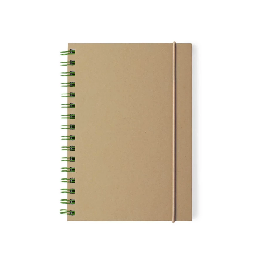 Notatnik (ok. A5, 80 kartek w linie), elastyczna opaska do zamykania, spiralne bindowanie, twarda okładka