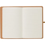 Notatnik (ok. A5, 96 kartek w linie), miękka okładka, przeszycia na brzegach okładki, miejsce na przybory do pisania (nie dołączone)