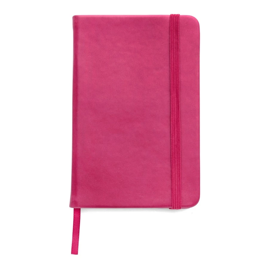 Notatnik w formacie ok. A5, posiada 96 kartek w linie (192 strony), tasiemka zakładkowa umożliwia wygodne zaznaczanie ostatniej strony lub ważniejszych notatek, dodatkowe zamknięcie w postaci dopasowanej kolorystycznie elastycznej opaski, twarda okładka wykonana z PU